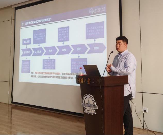 本次活动邀请公司就业指导中心就业专职辅导员卢浩泽老师担任主讲人,会上卢浩泽老师以选调生的定义为切入点,对选调生政策、备考经验、职业发展等进行了细致讲解。在互动交流环节,卢浩泽老师悉心解答了同学们提出的问题,并鼓励大家奔赴基层一线,将个人的理想追求融入到党和国家事业之中。此次求职分享会取得了积极反响,参与的同学纷纷表示获益匪浅。