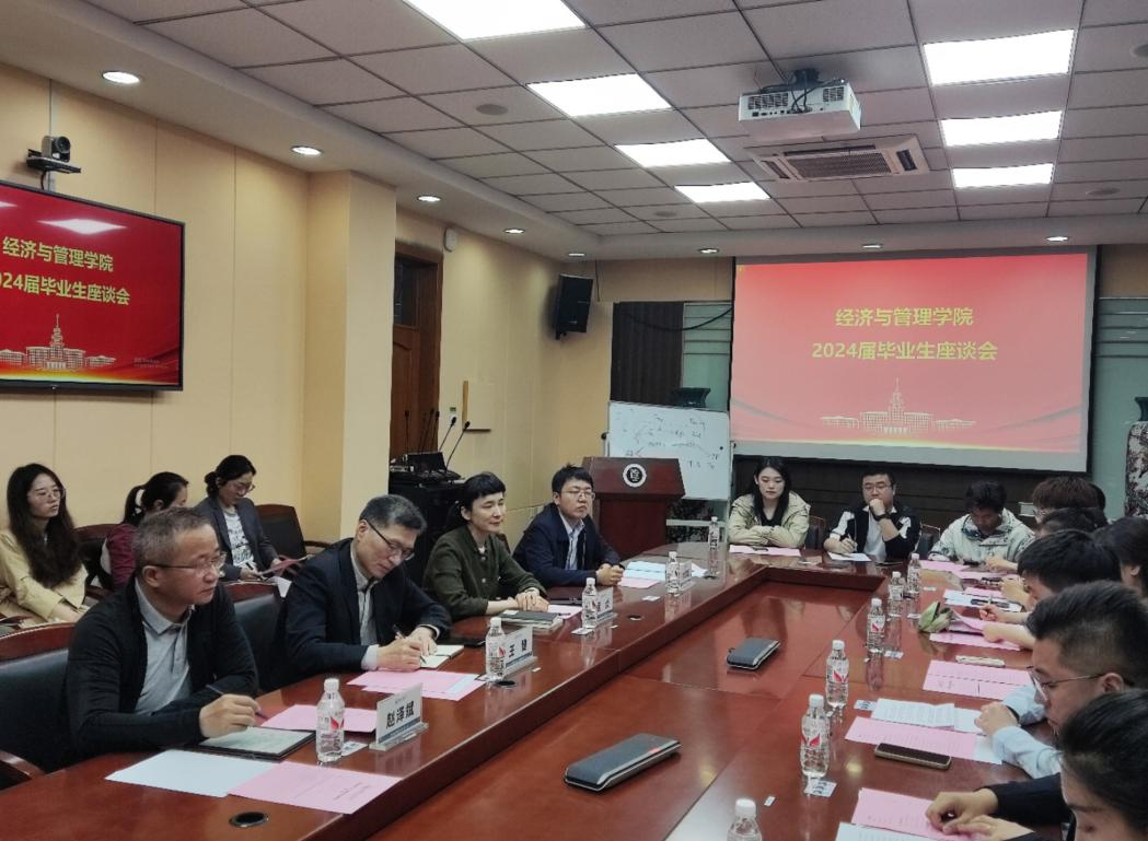 6月5日下午,xc体育在管理楼G216召开2024届毕业生座谈会,公司经理王健、党委书记孟炎、副经理赵泽斌、党委副书记徐建慧,人才培养办公室秘书老师、辅导员及本、硕、博毕业生代表参加此次座谈会。会议由徐建慧主持。