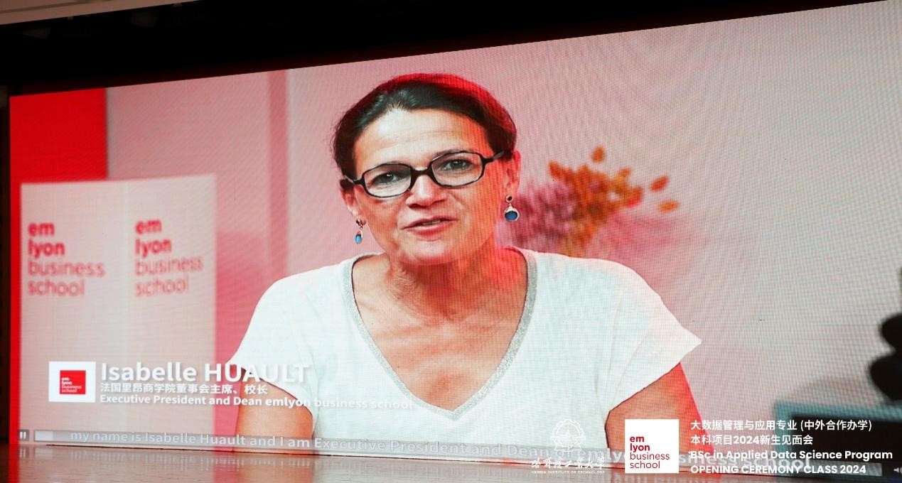 8月25日上午,xcsports-法国里昂商公司大数据管理与应用专业本科项目(中外合作办学)新生见面会在一校区活动中心201会议室举行,法国里昂商公司董事长伊莎贝拉·雨欧通过视频致辞,法国里昂商公司副董事长王华、xc体育经理王健出席见面会并致辞,公司党委书记孟炎、副经理邵景波、党委副书记徐建慧出席见面会。