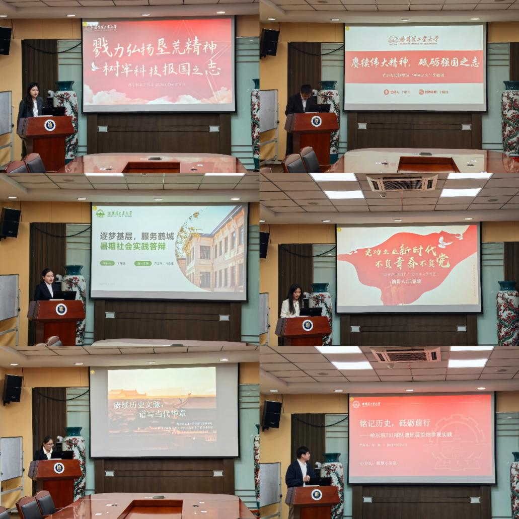 大会开始,主持人介绍答辩评委并宣读评比细则,各支队伍依次从实践介绍、活动过程、实践成果、团队感悟等方面进行总结答辩。各支实践团队与小分队在2024年暑期开展了以志愿垦荒、爱国主义教育、基层服务、文化传承为主题的暑期社会实践活动。“逐梦基层,服务鹤城”团队以农业产业优势为主的齐齐哈尔梅里斯区作为实践地,深入基层开展政务实习;“赓续文脉实践团”通过线上线下相结合的方式感悟文化传统、参观博物馆和文化基地。“博学耕新垦研团”的成员参观了哈军工纪念馆,并与师生代表展开座谈;“星星之火”实践团将实地参观和理论学习相结合;最后,大会评选出实践团队一等奖2名,二等奖2名,三等奖1名,以及实践小分队一等奖1名。